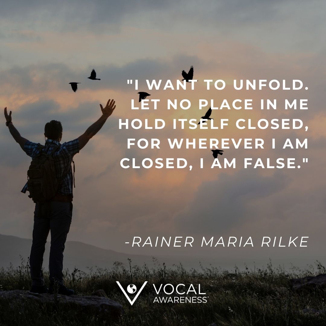 “As one of my favorite poets, Rainer Maria Rilke said over a hundred years ago, “I want to unfold. I do not want to stay folded anywhere, because where I am folded, there I am a lie.” Here is another translation of Rilke’s same poem: “I want to unfold. Let no place in me hold itself closed, for wherever I am closed, I am false.”